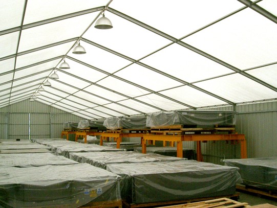 高山倉儲篷房為輕型建筑,適應各類地基環境,降低地基處理成本。并可充分利用廠區內的空余土地滿足臨時空間需求。還可多次重復使用,隨心拆卸,拆卸后運輸、重搭方便,幾乎無損耗。